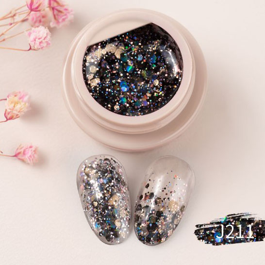 Гліттерний гель GDCOCO №211 — це яскравий і ефектний гель для нігтів, що містить гліттер, який надає манікюру блискучий і мерехтливий вигляд. Він ідеально підходить для створення святкових і креативних дизайнів.